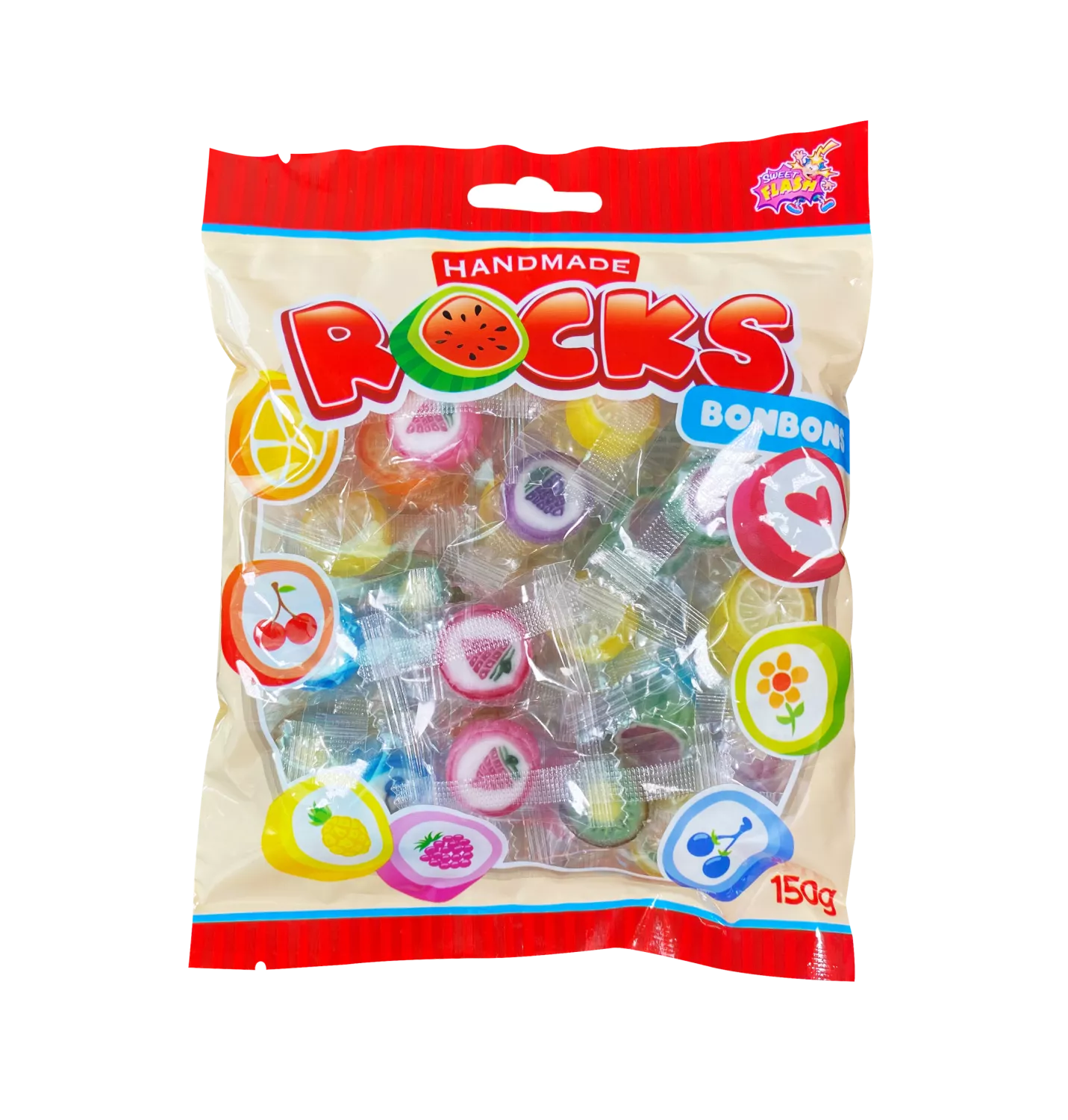 Alla känner till och älskar dem: de ikoniska hårda karamellerna med fruktiga smaker av äpple, körsbär, apelsin, citron, melon och hallon. Smakerna är noggrant återskapade i sockerblandningen.
